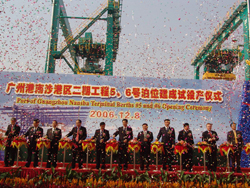 12月8日,广州港南沙港区二期工程新建5、6号两个10万吨级集装箱专用泊位通过整体交工验收,并迎来“中远深圳”集装箱班轮,开始集装箱试投产作业。同期,南沙港区出海航道拓宽浚深工程也投入使用。