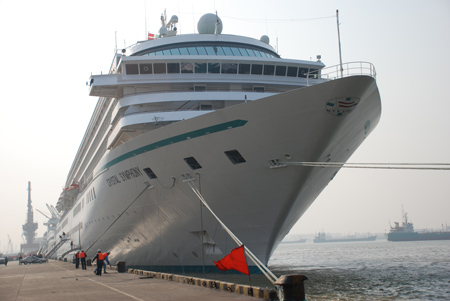 4月9日上午,巴哈马籍豪华邮轮“水晶交响”号靠泊天津港客运码头,这是今年到达天津港的第五艘、也是最大一艘国际豪华邮轮。该邮轮共有千余名旅客,分赴京津等地观光旅游。据了解,今年8月份,国际豪华邮轮“爱兰歌娜”号将以天津港为母港开通国际旅游航线,天津港将迈向邮轮母港。