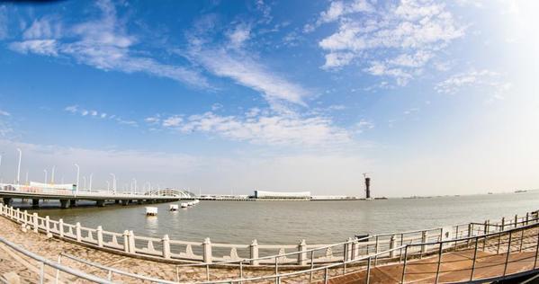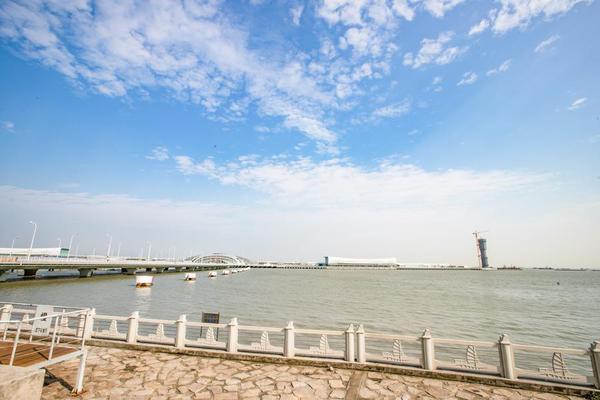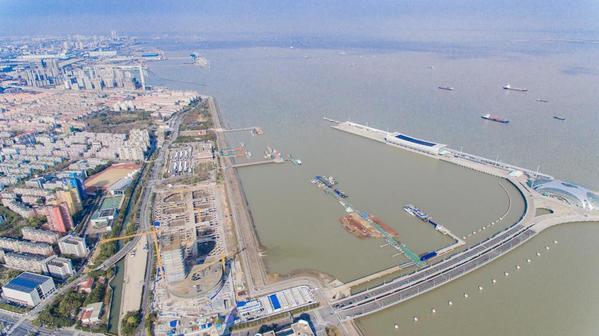 远眺吴淞口国际邮轮港。新华网吴恺摄