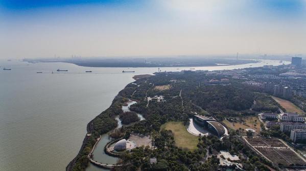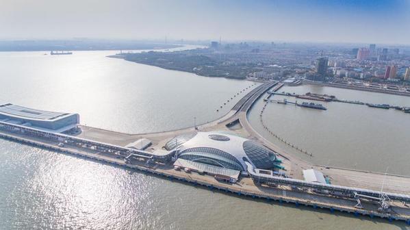 上海吴淞口国际邮轮港位于长江、黄浦江、蕰藻浜三江交汇处,瞰长江奔腾不息。新华网罗沛鹏摄
