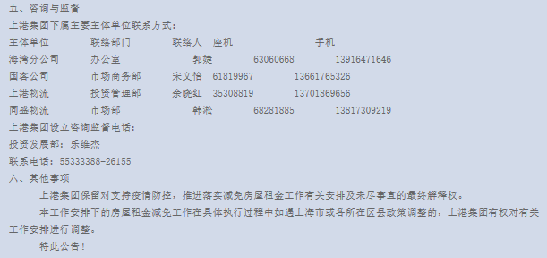 以上是公告中发布的主体单位联系方式,更多详细信息请至上港集团官网查询。