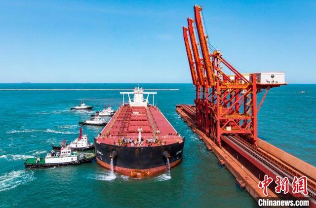 山东港口烟台港接卸30万吨级铝土矿船。修许罡 摄