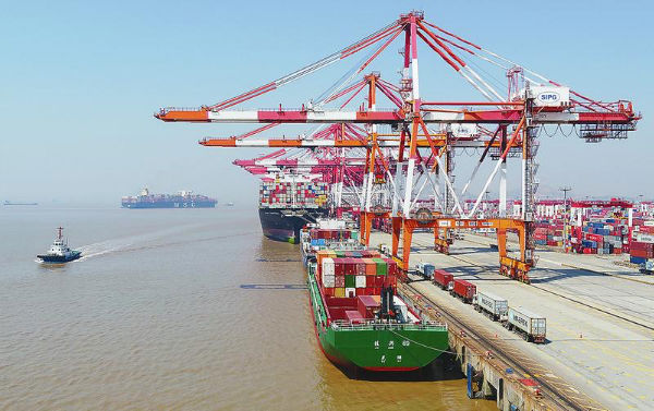 当日,洋山港迎来国际集装箱船21艘,其中船长达366米、可装载18000标准箱的超大集装箱船10艘。“满载而来的大型货轮让洋山港热闹起来,又看到了往日车流穿梭的景象。”洋山港海事局工作人员沈高瀚说。