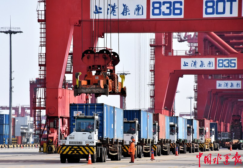 3月以来,洋山深水港的国际进出港干线船和国内进出港支线集装箱船舶流量稳步提升,日均集装箱吞吐量由32000标准箱恢复到52000标准箱水平,已基本恢复到正常水平的90%。仅3月25日当天,上海洋山港集装箱昼夜吞吐量就完成了5.6万标准箱。从全局看,整个上海港目前集装箱昼夜吞吐量平均数已超11万标准箱,为正常水平的9成以上。