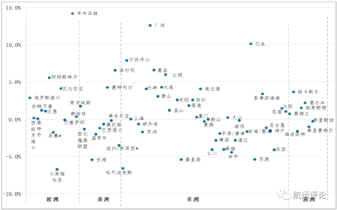 四、全球液散港口吞吐量涨跌互现