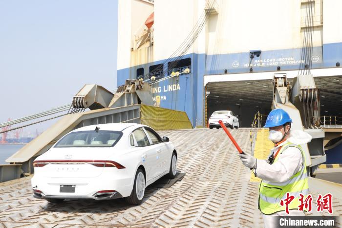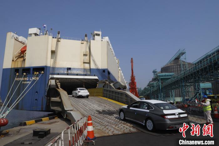 中新网青岛4月16日电 (记者 杨兵 胡耀杰)“琳达”号滚装船16日从山东港口青岛港大港公司码头装载完356辆韩国现代汽车后顺利离港,这标志着青岛港乘用车国际中转业务正式开通。