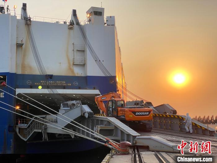 中新网烟台4月28日电 (王娇妮 狄秀雯)28日下午,“挑战者”轮在山东港口烟台港装载162台各类工程机械及商用车后驶离35泊汽车码头,经停韩国驶往东非首港坦桑尼亚达累斯萨拉姆港,标志着该港商品车东非滚装航线正式开通。