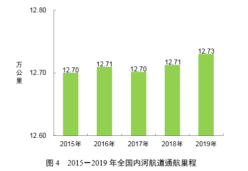 年末全国内河航道通航里程12.73万公里,比上年增加172公里。等级航道里程6.67万公里,占总里程52.4%,提高0.2个百分点。三级及以上航道里程1.38万公里,占总里程10.9%,提高0.3个百分点。