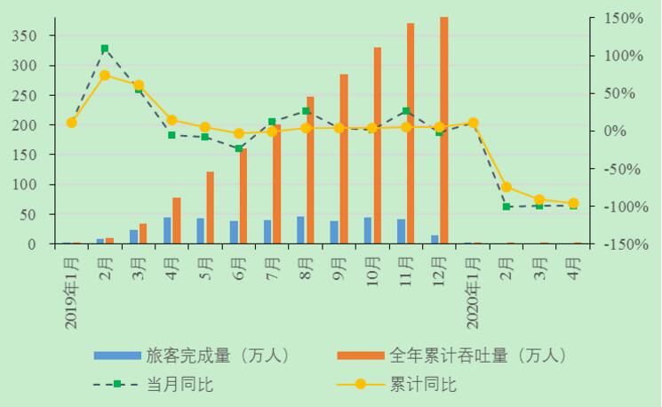 4月份长江水运完成旅客发送量0.20万人次,与去年同比下降99.6%,与上月环比下降13.8%。自年初累计完成旅客发送量3.19万人次,与去年同比下降95.9%。