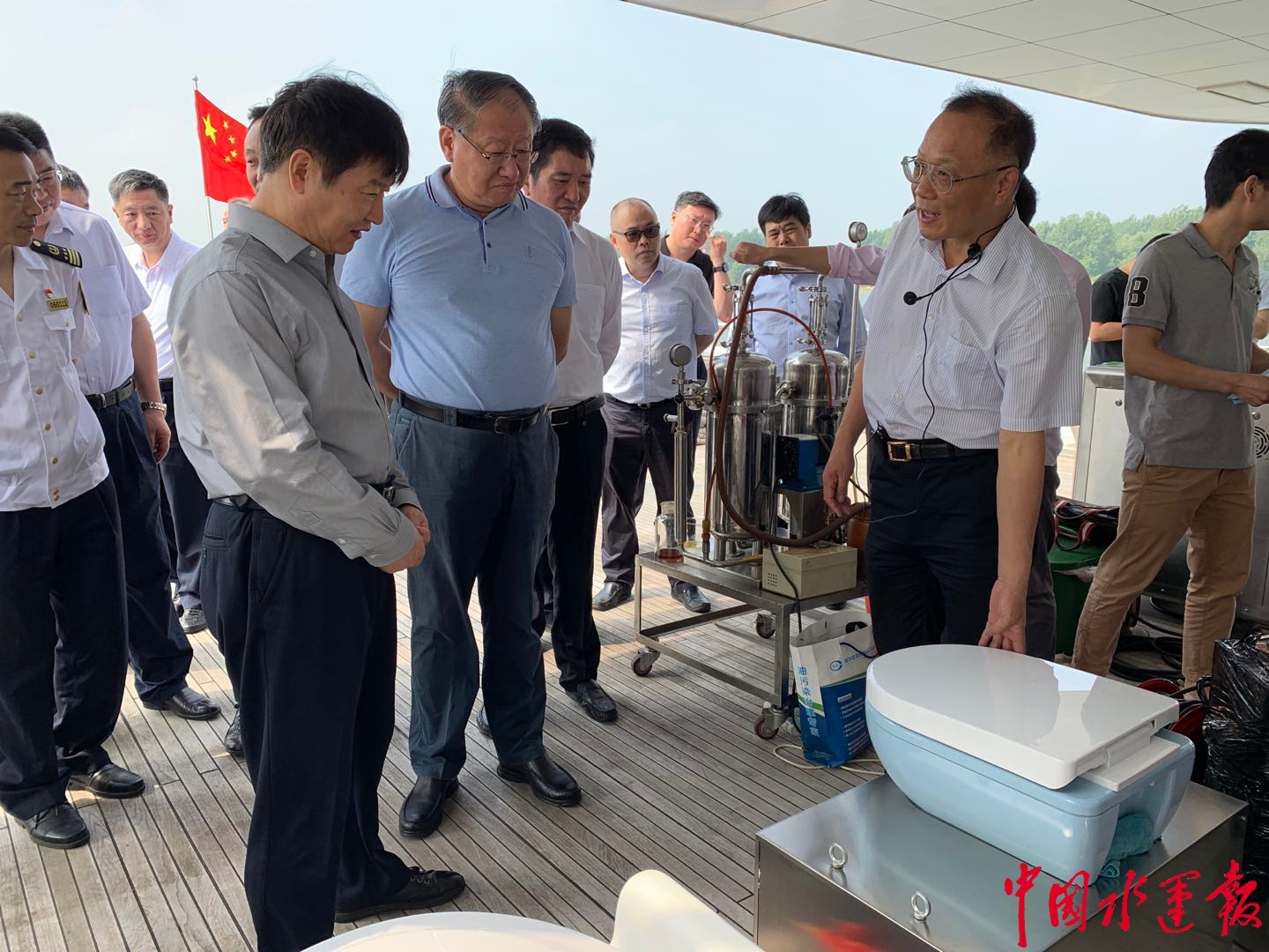 当日,刘小明乘坐海巡艇调研了长江南京大桥附近水域通航秩序和沿江岸线整治、长江干线船舶污染物联合监管与服务信息系统开发建设试运行、扬子巴斯夫港口危险化学品安全生产等工作情况,观摩了阻截式油水分离装置、免冲水智能马桶、湿垃圾处理器等船舶防污染新技术新装备,认真听取了长江航务管理局、江苏省交通运输厅、江苏海事局、江苏省港口集团有关汇报,并前往“长江汇”兴隆洲水上绿色综合服务区和新生圩船舶生活污水收集专用泊位,详细调研检查了船舶污染物接收情况及生活污水收集和集中上岸情况。