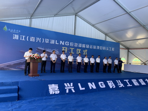 6月30日,浙江省重点项目嘉兴(平湖)LNG应急调峰储运站码头项目开工仪式在独山港区举行。省交通运输厅副厅长夏炳荣宣布项目开工,嘉兴市副市长江海洋及平湖市市长仲旭东、常务副市长钱勇彪等领导出席仪式。