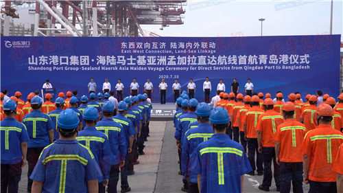 7月10日,伴随着“穆勒棉兰”轮汽笛鸣响,山东省港口集团-海陆马士基亚洲孟加拉直达航线在青岛港前湾集装箱码头81泊位成功首航。