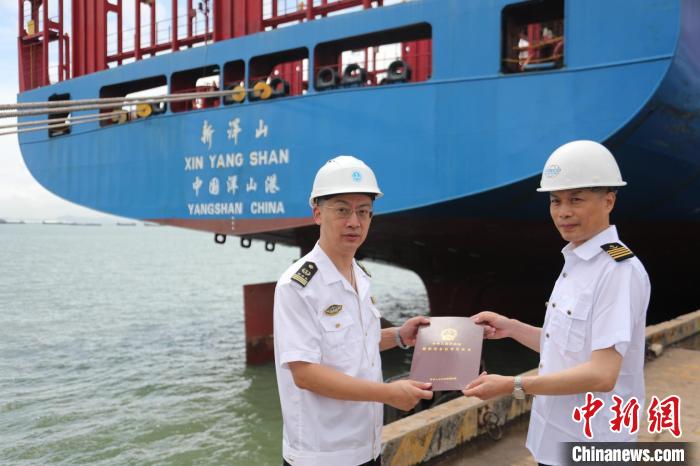 中新网上海8月12日电 (王子涛)8月12日,在临近中国(上海)自由贸易试验区临港新片区正式揭牌一周年之际,中远海运发展股份有限公司所属“新洋山”轮,完成了“中国洋山港”籍船舶登记相关手续。