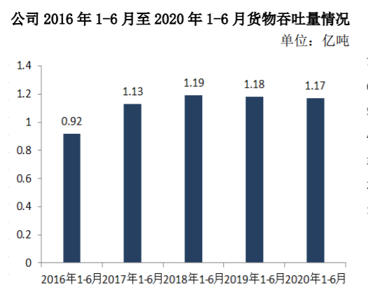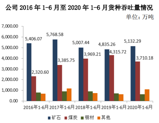 煤炭完成 3,710.18 万吨,同比减少 14.03%,虽然随着复工复产提速,火电发电量明显增加,煤炭需求开始回升,但 2 至 4 月受疫情影响,用电需求低迷,煤炭下水量大幅减少,导致唐山港上半年煤炭运量减少。
