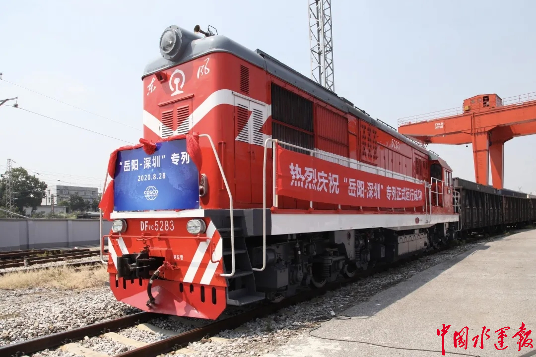 8月28日,中远海运物流“岳阳-深圳”集装箱海铁联运首发专列从岳阳货运北站驶出。与原来的江海联运相比,该铁海联运专列至少可节约7天运输时间,具有突出的时间和成本优势。该专列常态化运营后每两天一个班列,预计年运量将超过6000标箱。