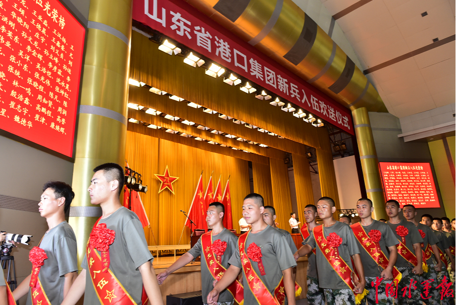 在全国上下纪念中国人民抗日战争暨世界反法西斯战争胜利75周年之际,9月4日,山东省港口集团举行新兵入伍欢送仪式,来自山东港口所属港口、学校的85名入伍新兵集体宣誓,在军歌声中告别家乡、踏上征程。