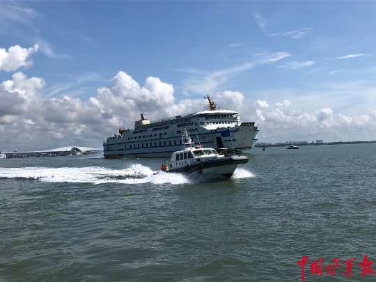 在“紫荆二十二”轮出港前,海事部门增派执法人员到码头现场,查看客滚船船上车辆绑扎情况,督促船员做好人车分离,维护车辆和旅客登船秩序;首船出港期间,指派“海巡09046”“海巡09068”等2艘船艇对“紫荆二十二”轮实施清道护航和安全警戒,并引领该船顺利出港。