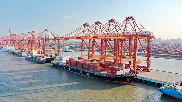 为构建全方位、多层次、多领域的“一带一路”新格局,江苏省港口集团全面把握“一带一路”建设带来的发展机遇,坚持以港口资源为支撑、以船舶运输为纽带、以全程物流为延伸,持续优化 “海上丝路”航线网络布局,全力服务“一带一路”建设。