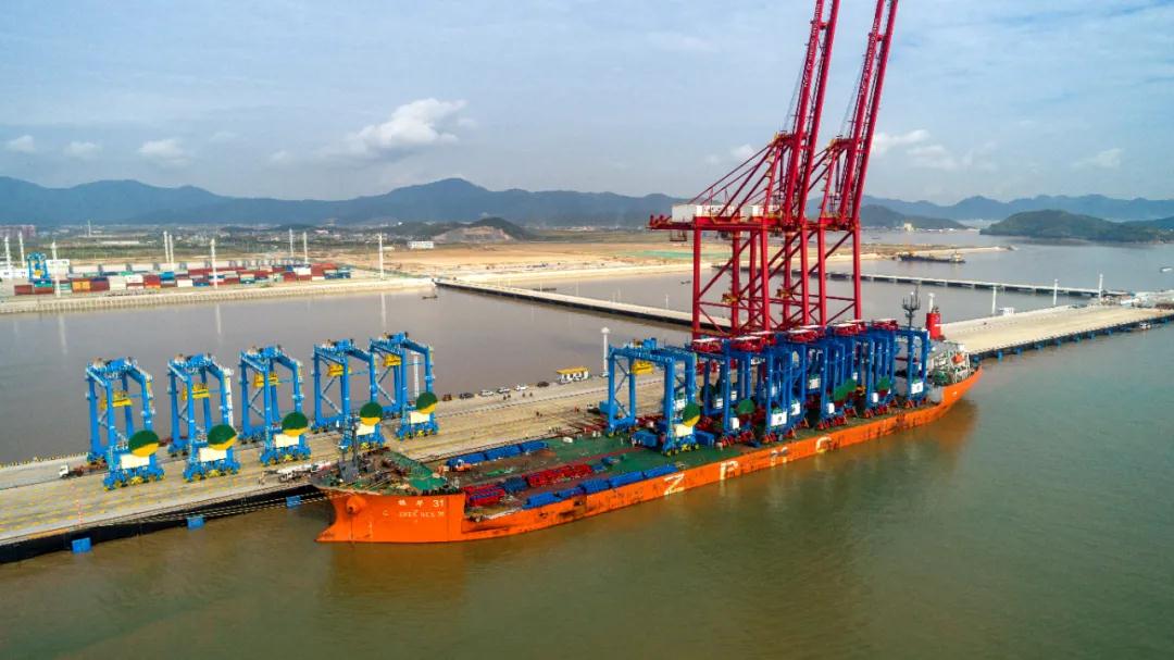 11月1日、2日,宁波舟山港最高等级集装箱码头——梅山港区集装箱码头能力提升迎来新进展,6台“无司机室”远控自动化龙门吊到港完成卸船,新建的8号集装箱码头泊位完成交工验收。待新自动化龙门吊和新泊位投用后,梅山港区集装箱码头综合作业能力将进一步提升。
