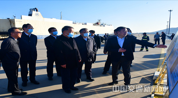 杨传堂在大窑湾港区调研了解了汽车码头、矿石码头、油品码头的生产运营情况,听取了辽宁港口集团资源整合和改革发展、生产经营情况汇报。
