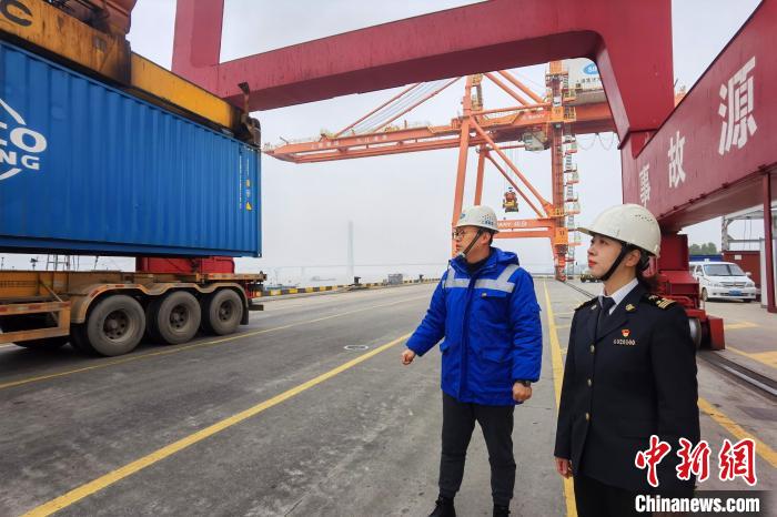 12月3日,九江海关关员对江西省首票“船边直提”业务进行现场指导。 胡怡明 摄
