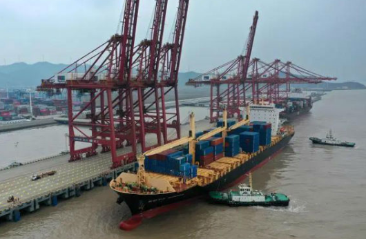 舟山海关监管数据显示,新加坡籍的“狮城KOTA SINGA”集装箱轮是甬舟公司新增航线-太平西非线的首航船。