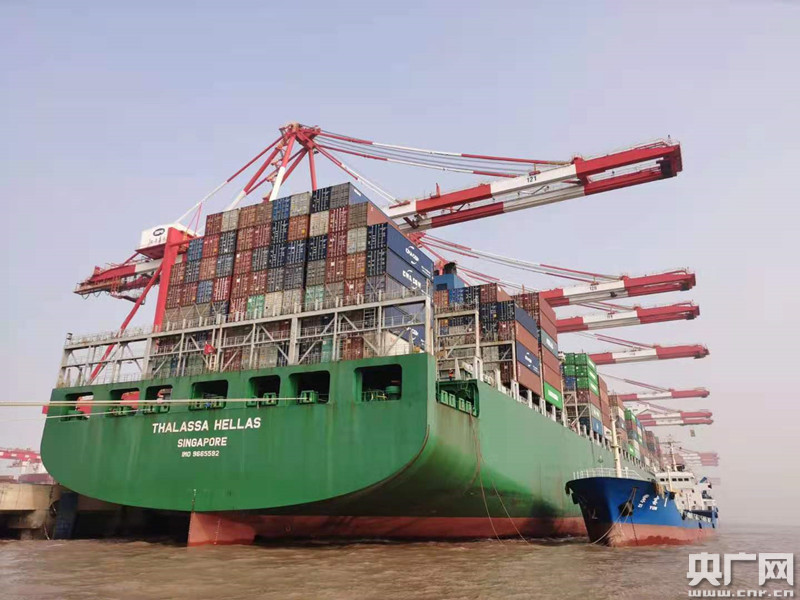 央广网上海12月12日消息(记者傅闻捷)12日19:58分,中石油上港(舟山)能源有限公司为停靠在洋山四期自动化码头的长荣海运EMC THALASSA HELLAS(海希)15000TEU大型集装箱船提供了低硫保税船用燃料油补给服务,这是该公司成立后,首次提供船用燃料油补给服务,加注量约1000吨船用燃料油。