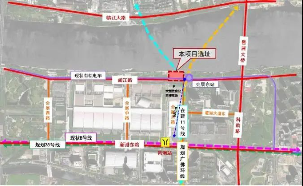 广州琶洲港澳客运口岸项目码头选址于阅江中路北侧地块、有轨电车站上方,毗邻广州国际会展中心及琶洲大桥。项目一期计划投资3.58亿元,码头岸线长度280米,设计5个500吨级泊位。