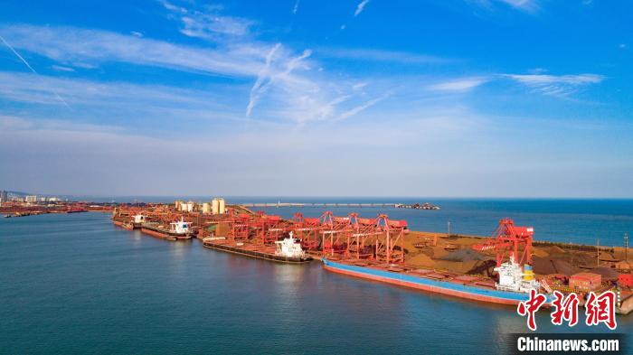 山东港口日照港石臼港区30万吨级矿石码头泊位停满作业船舶。鲁罡轩 摄