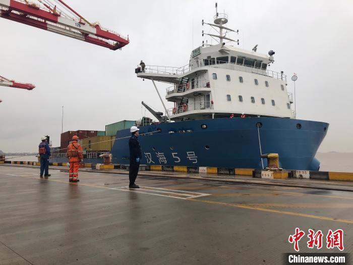 中新网上海3月6日电 (王子涛 曲鹏翔 韩帅)3月6日,中国最大江海直达集装箱船舶“汉海5号”轮,在洋山港海事局交管中心的远程监控下,安全靠泊洋山港盛东集装箱码头2泊位,这是目前中国最大的特定航线江海直达集装箱船舶,该船固定往返于武汉至洋山港,与现行主力船型相比,载箱量翻了一番,将近洋山港首艘江海直达船“汉唐上海”轮的10倍,标志洋山港江海联运实现了跨越式发展。