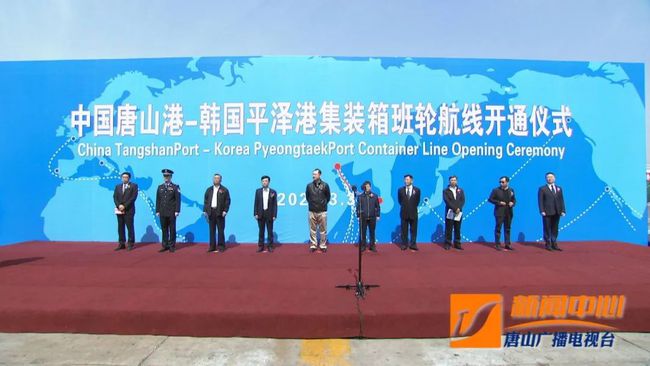 上午,随着船笛鸣响,满载700标集装箱货物的货轮从唐山港京唐港区启航,前往韩国平泽港。市政府副市长邱舰出席开通仪式并宣布航线开通。