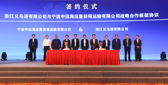 会议还举行了签约仪式,浙江义乌港有限公司分别与宁波中远海运集装箱运输有限公司、以星综合航运(中国)有限公司签订战略合作框架协议;义乌市国际陆港集团有限公司分别与宁波龙星物流有限公司、浙江盈和国际物流有限公司签订战略合作框架协议。