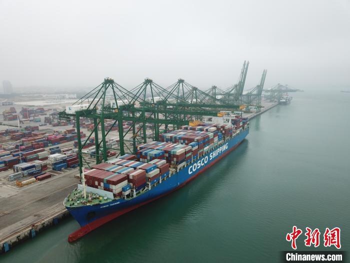 图为“中远太仓”轮18日缓缓驶抵福州江阴港区。张政荣 摄