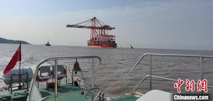 中新网上海5月29日电 (王子涛 曹立杰)5月29日,在洋山港海事局船舶交通管理中心远程监控和现场海巡艇的护航下,载着2台桥吊、6台轨道吊的“振华31”轮顺利靠泊洋山港四期自动化码头。随后将通过候潮滚卸方式将2台桥吊、6台轨道吊滚卸上岸,这是今年以来洋山深水港迎来的首批岸吊进港安装,这批桥吊、轨道吊安装完毕后,洋山四期自动化码头的装卸能力将提高到每年550万标箱。
