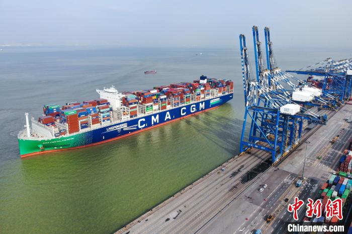 广州港集团6日称,液化天然气(LNG)动力集装箱船“达飞皇家宫殿”近日靠泊南沙二期。