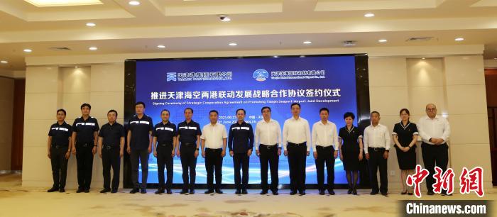 中新网天津6月23日电 (王君妍)23日,天津滨海国际机场有限公司与天津港(集团)有限公司签署战略合作协议,瞄准北方国际航运枢纽、国际航空物流中心功能定位,充分发挥天津空港、海港功能优势,强化双方合作和联动。
