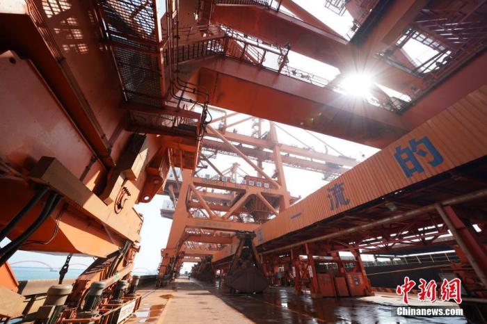 资料图为曹妃甸港区矿石码头一景。 中新社记者 张兴龙 摄