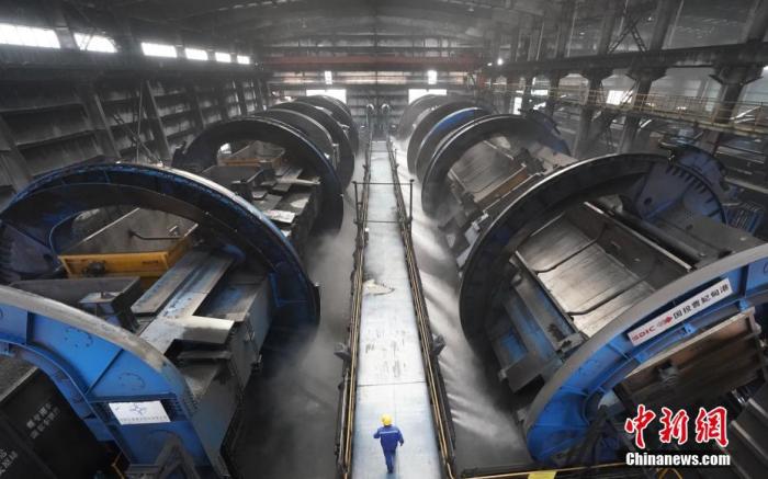 资料图为曹妃甸港铁路重载运输万吨列车卸车点的翻车机房内正在进行卸煤作业。 中新社记者 张兴龙 摄