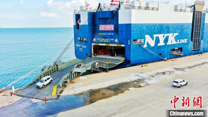 图为辽宁港口集团美洲至东南亚商品车“水水中转”业务正式启动。 刘仁超 摄