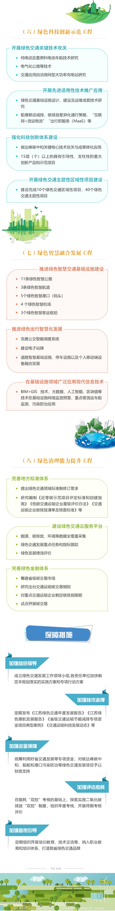 为保证绿色交通发展目标实现,聚焦绿色交通发展的重点环节和关键领域,《规划》提出“十四五”绿色交通8大重点工程:交通运输碳达峰攻坚工程、交通运输装备降碳工程、全域绿色出行续航工程、绿色基础设施提质工程、减污降碳协同治理工程、绿色科技创新示范工程、绿色智慧融合发展工程、绿色治理能力提升工程。(厅科技处)