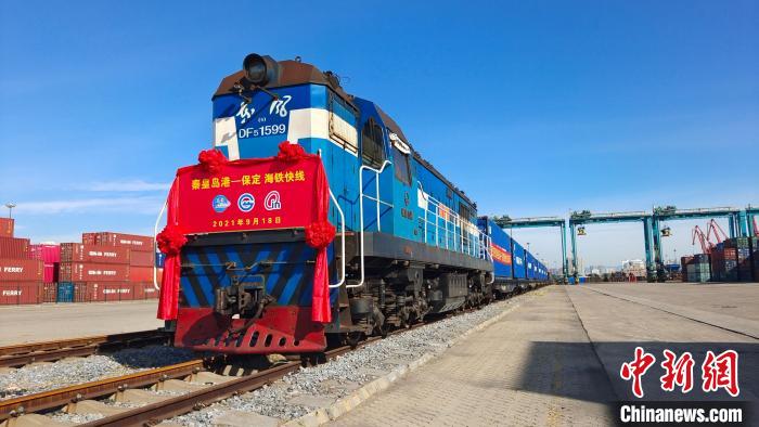 中新网石家庄9月18日电 (王天译 徐道树)18日上午9点,由保定京雄保国际智慧港发出的海铁联运集装箱列车驶入秦皇岛港新港湾集装箱码头,标志着秦皇岛港为河北省内陆企业开辟的“保定—秦皇岛港—仁川”低碳海陆新通道正式开通。