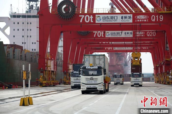 中新网日照10月9日电 (记者 胡耀杰)全球首个顺岸开放式全自动化集装箱码头9日在山东港口日照港正式启用。该码头为全球港口提供了传统码头改造升级为全自动化集装箱码头的“中国样本”,对引领全自动化集装箱码头的“低成本、短周期、见效快”建设具有重要示范意义。