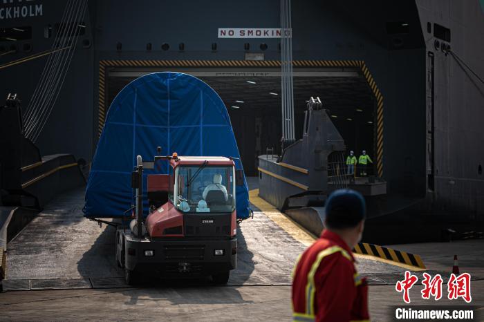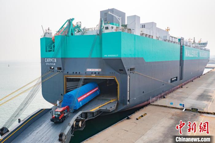 中新网大连10月25日电 (记者 杨毅)随着装载中航沈飞生产的2100方空客A220飞机模块,25日在大连汽车码头完成装卸作业将运输至美国巴尔的摩港,这是中国飞机模块首次以滚装船货物运输形式出口,标志着辽宁港口集团首条美洲滚装外贸出口班轮航线正式开通。