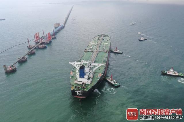 北部湾港钦州港区30万吨级油码头首船试靠成功。李其龙摄