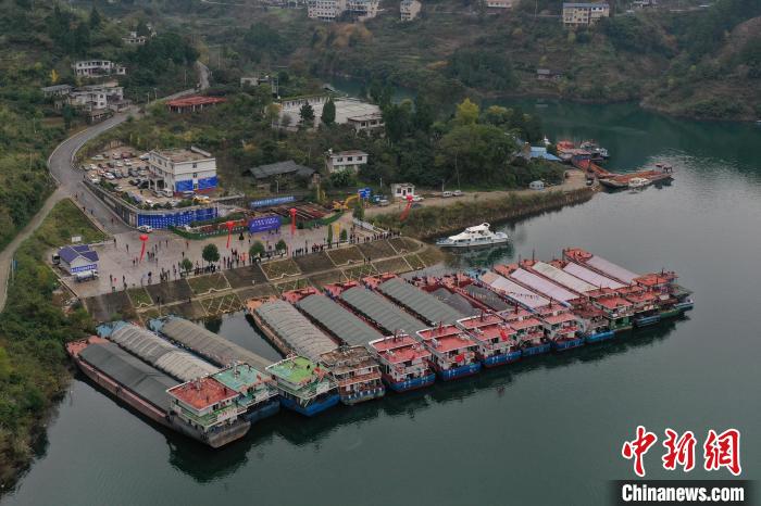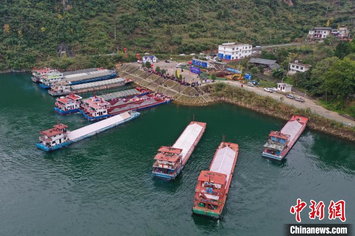 中新网贵州开阳11月16日电 (瞿宏伦)16日,随着14艘500吨级标准船舶装载的6800吨磷矿石从贵州省贵阳市开阳县起航,经过贵州省余庆县、思南县、沿河自治县及重庆市彭水县、武隆县到达重庆市涪陵区,标志着贵阳港开阳港区北上长江顺利首航。