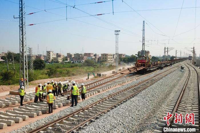 中新网广州11月19日电 (郭军 邓联旭 黄诗伟)广州南沙港铁路施工建设取得新突破。11月19日,记者从中铁二十五局获悉,南沙港铁路已铺设长轨135公里,铺轨任务完成超过七成,这标志着该项目施工建设进入最后冲刺阶段,为今年年底货运达到开通条件奠定坚实基础。