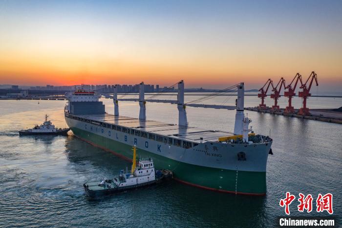 中新网烟台12月17日电 (记者 王娇妮)记者17日从山东港口烟台港获悉,世界载重吨位最大的多用途重吊船“泰兴”轮近日首航山东港口烟台港。