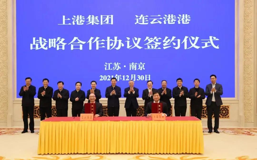 2021年12月30日,上海国际港务(集团)股份有限公司和连云港港口控股集团有限公司,在南京正式签署战略合作协议,标志着在共建“一带一路”的背景下,上海港、连云港港的合作翻开崭新一页,连云港市打造“千万标箱、东方大港”迈出了关键一步。