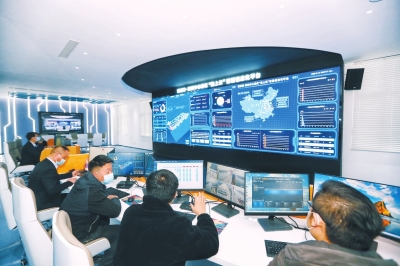 工作人员正在操作“淮上云”智能信息化平台,实时监控天气状况。