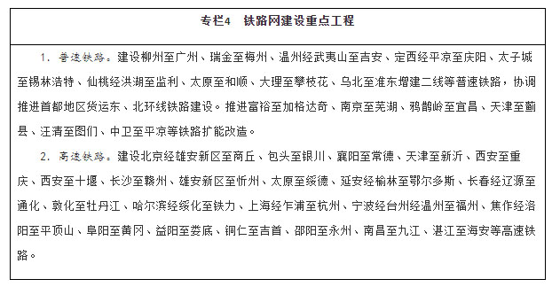建设现代化铁路网。坚持客货并重、新建改建并举、高速普速协调发展,加快普速铁路建设和既有铁路扩能改造,着力消除干线瓶颈,推进既有铁路运能紧张路段能力补强,加快提高中西部地区铁路网覆盖水平。加强资源富集区、人口相对密集脱贫地区的开发性铁路和支线铁路建设。推进高速铁路主通道建设,提升沿江、沿海、呼南、京昆等重要通道以及京沪高铁辅助通道运输能力,有序建设区域连接线。综合运用新技术手段,改革创新经营管理模式,提高铁路网整体运营效率。统筹考虑运输需求和效益,合理规划建设铁路项目,严控高速铁路平行线路建设。